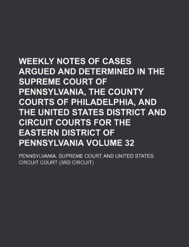You are about to access our book library "Weekly notes of cases argued and determined in the Supreme Court of Pennsylvania, the County courts of Philadelphia, and the United States District ... Eastern district of Pennsylvania Volume 32 full version"