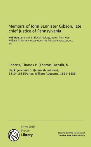 Memoirs of John Bannister Gibson, late chief justice of Pennsylvania: with Hon. Jeremiah S. Black's Eulogy, notes from Hon. William A. Porter's essay upon his life and character, etc., etc full version