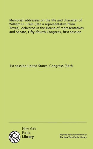 Memorial addresses on the life and character of William H. Crain (late a representative from Texas), delivered in the House of representatives and Senate, Fifty-fourth Congress, first session full version