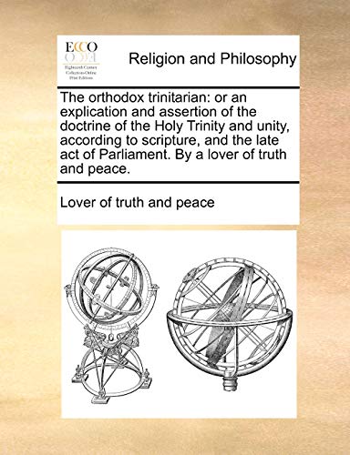 The orthodox trinitarian: or an explication and assertion of the doctrine of the Holy Trinity and unity, according to scripture, and the late act of Parliament. By a lover of truth and peace. full version