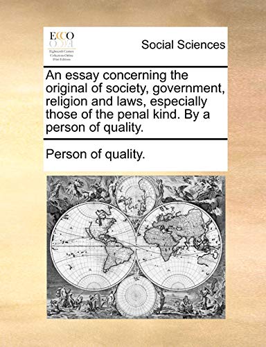 An essay concerning the original of society, government, religion and laws, especially those of the penal kind. By a person of quality. full version