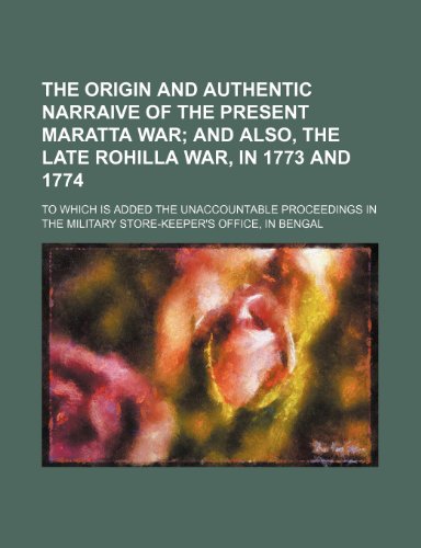 You are about to access our book library "The origin and authentic narraive of the present Maratta War; and also, the late Rohilla War, in 1773 and 1774 . To which is added the unaccountable ... the military store-keeper's office, in Bengal full version"