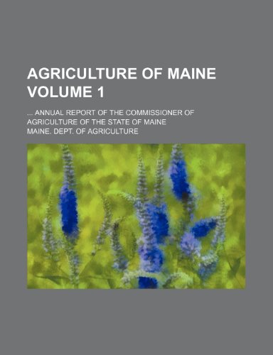 Agriculture of Maine Volume 1 ; ... annual report of the Commissioner of Agriculture of the State of Maine full version