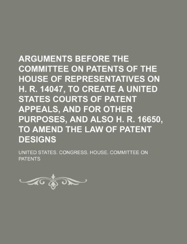 You are about to access our book library "Arguments Before the Committee on Patents of the House of Representatives on H. R. 14047, to Create a United States Courts of Patent Appeals, and for Other Purposes, and Also H. R. 16650, to Amend the Law of Patent Designs full version"