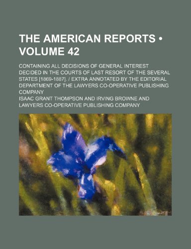 You are about to access our book library "The American reports (Volume 42); containing all decisions of general interest decided in the courts of last resort of the several states [1869-1887]. ... the Lawyers co-operative publishing company full version"