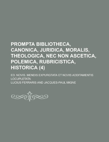 Prompta Bibliotheca, Canonica, Juridica, Moralis, Theologica, NEC Non Ascetica, Polemica, Rubricistica, Historica; Ed. Novis. Mendis Expurgtata Et Nov full version