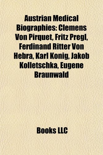 Austrian Medical Biography Introduction: Clemens Von Pirquet, Fritz Pregl, Ferdinand Ritter Von Hebra, Eugene Braunwald, Karl Konig full version