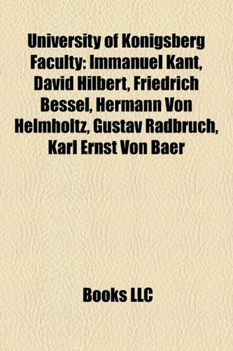 University of Konigsberg Faculty: Immanuel Kant, David Hilbert, Hermann Von Helmholtz, Gustav Radbruch, Karl Ernst Von Baer, Konrad Lorenz full version