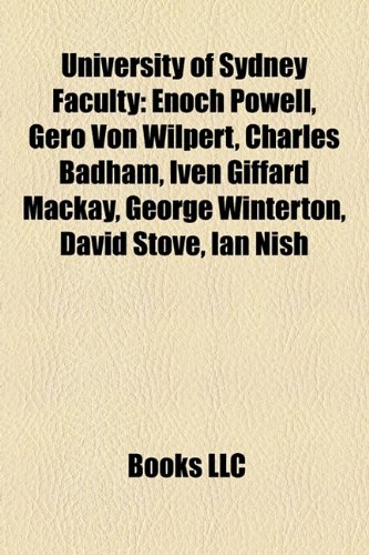 University of Sydney Faculty: Enoch Powell, Gero Von Wilpert, Charles Badham, Iven Giffard MacKay, George Winterton, Hans Freeman, David Stove full version
