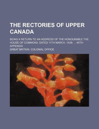 The rectories of Upper Canada; being a return to an address of the Honourable the House of Commons, dated 11th March, 1839 with appendix full version