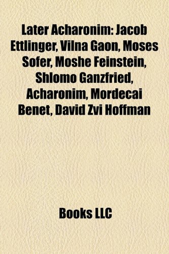 Later Acharonim: Jacob Ettlinger, Vilna Gaon, Moses Sofer, Moshe Feinstein, Shlomo Ganzfried, Acharonim, Mordecai Benet, David Zvi Hoffman full version