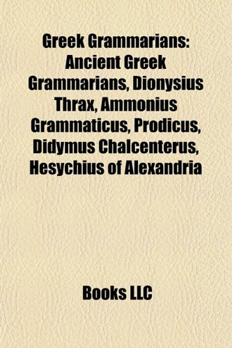 Greek Grammarians: Ancient Greek Grammarians, Dionysius Thrax, Ammonius Grammaticus, Prodicus, Didymus Chalcenterus, Hesychius of Alexandria full version