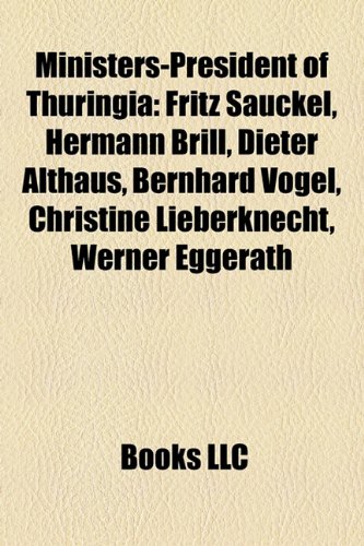 Ministers-President of Thuringia: Fritz Sauckel, Hermann Brill, Dieter Althaus, Bernhard Vogel, Christine Lieberknecht, Werner Eggerath full version