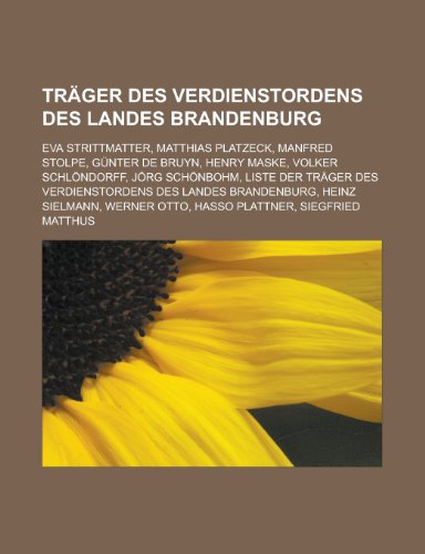 You are about to access our book library "Trager Des Verdienstordens Des Landes Brandenburg: Eva Strittmatter, Matthias Platzeck, Manfred Stolpe, Gunter de Bruyn, Henry Maske, Volker Schlondorff, Jorg Schonbohm, Liste Der Trager Des Verdienstordens Des Landes Brandenburg full version"