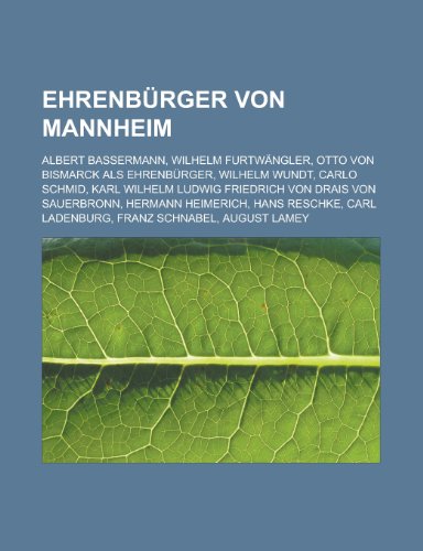 You are about to access our book library "Ehrenburger Von Mannheim: Albert Bassermann, Wilhelm Furtwangler, Otto Von Bismarck ALS Ehrenburger, Wilhelm Wundt, Carlo Schmid, Karl Wilhelm Ludwig Friedrich Von Drais Von Sauerbronn, Hermann Heimerich, Hans Reschke, Carl Ladenburg full version"