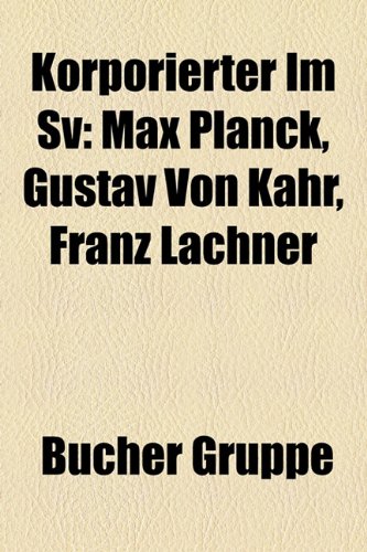 Korporierter Im Sv: Max Planck, Theodor Litt, Karl Lamprecht, August Marahrens, Franz Lachner, Gustav Von Kahr, Rudolf Eucken, Philipp Spitta full version
