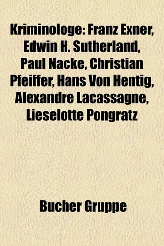 Kriminologe: Franz Exner, Edwin H. Sutherland, Robert Sommer, Paul Nacke, Christian Pfeiffer, Hans Von Hentig, Alexandre Lacassagne full version