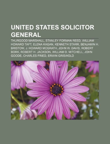 United States Solicitor General: Thurgood Marshall, Stanley Forman Reed, William Howard Taft, Elena Kagan, Kenneth Starr, Benjamin H. Bristow full version