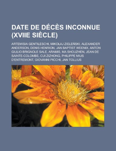 You are about to access our book library "Date de Deces Inconnue (Xviie Siecle): Artemisia Gentileschi, Miko Aj Ziele Ski, Alexander Anderson, Denis Henrion, Jan Baptist Weenix, Anton Giulio Brignole Sale, Aramis, Ma Shouzhen, Jean de Sainte-Colombe, Cui Zizhong full version"