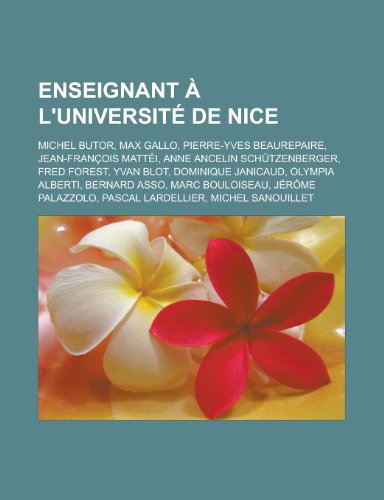 You are about to access our book library "Enseignant A L'Universite de Nice: Michel Butor, Max Gallo, Pierre-Yves Beaurepaire, Jean-Francois Mattei, Anne Ancelin Schutzenberger, Fred Forest, Yvan Blot, Dominique Janicaud, Olympia Alberti, Bernard Asso, Marc Bouloiseau full version"