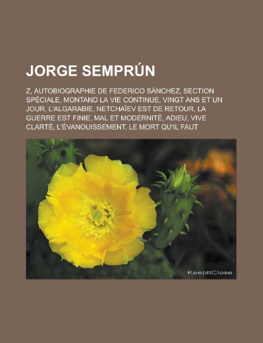 You are about to access our book library "Jorge Semprun: Z, Autobiographie de Federico Sanchez, Section Speciale, Montand La Vie Continue, Vingt ANS Et Un Jour, L'Algarabie, Netchaiev Est de Retour, La Guerre Est Finie, Mal Et Modernite, Adieu, Vive Clarte, L'Evanouissement full version"