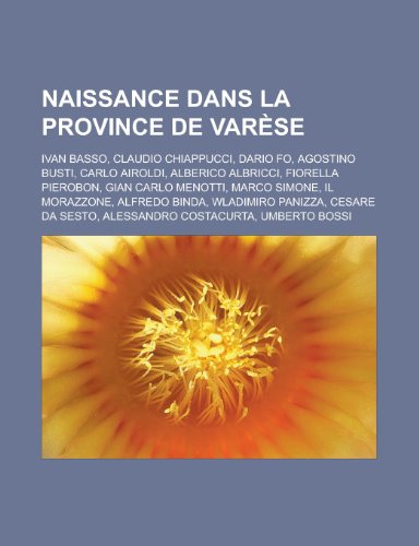 You are about to access our book library "Naissance Dans La Province de Varese: Ivan Basso, Claudio Chiappucci, Dario Fo, Agostino Busti, Carlo Airoldi, Alberico Albricci, Fiorella Pierobon, Gian Carlo Menotti, Marco Simone, Il Morazzone, Alfredo Binda, Wladimiro Panizza full version"