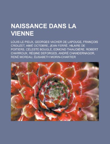 You are about to access our book library "Naissance Dans La Vienne: Louis Le Pieux, Georges Vacher de Lapouge, Francois Crouzet, Aime Octobre, Jean Ferre, Hilaire de Poitiers, Celeste Bougle, Edmond Thiaudiere, Robert Charroux, Regine Deforges, Andre Chandernagor full version"