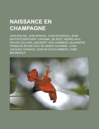 You are about to access our book library "Naissance En Champagne: Jean Racine, Jean Bureau, Jean Rousseau, Jean-Baptiste Berthier, Cardinal de Retz, Pierre-Paul Royer-Collard, Adelbert Von Chamisso, Alexandre Francois Bruneteau de Sainte Suzanne, Louis Jacques Thenard full version"