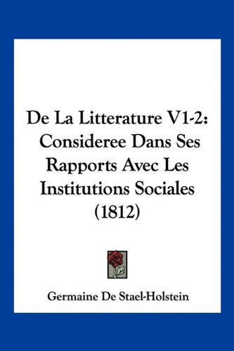 De La Litterature V1-2: Consideree Dans Ses Rapports Avec Les Institutions Sociales (1812) (French Edition) full version