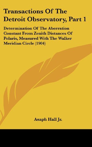 Transactions Of The Detroit Observatory, Part 1: Determination Of The Aberration Constant From Zenith Distances Of Polaris, Measured With The Walker Meridian Circle (1904) full version