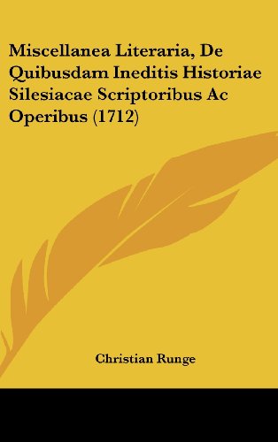 Miscellanea Literaria, De Quibusdam Ineditis Historiae Silesiacae Scriptoribus Ac Operibus (1712) (Latin Edition) full version