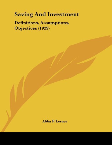 Saving And Investment: Definitions, Assumptions, Objectives (1939) full version