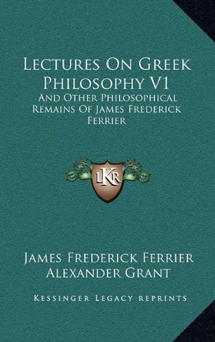 Lectures On Greek Philosophy V1: And Other Philosophical Remains Of James Frederick Ferrier full version