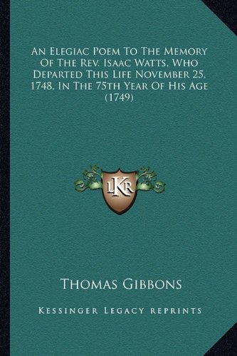 An Elegiac Poem To The Memory Of The Rev. Isaac Watts, Who Departed This Life November 25, 1748, In The 75th Year Of His Age (1749) full version