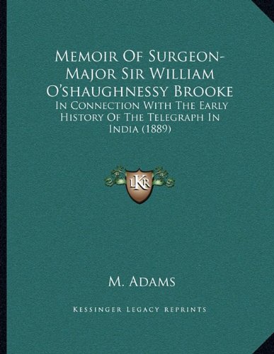 Memoir Of Surgeon-Major Sir William O'shaughnessy Brooke: In Connection With The Early History Of The Telegraph In India (1889) full version