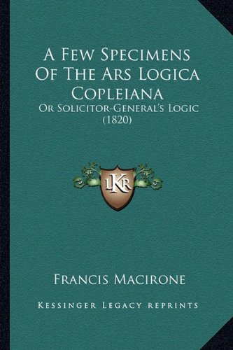 A Few Specimens Of The Ars Logica Copleiana: Or Solicitor-General's Logic (1820) full version