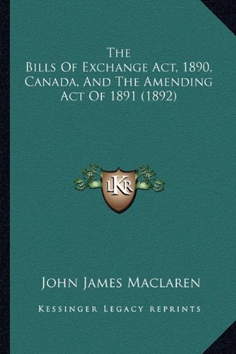 The Bills Of Exchange Act, 1890, Canada, And The Amending Act Of 1891 (1892) full version