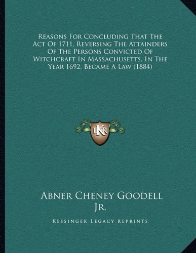 Reasons For Concluding That The Act Of 1711, Reversing The Attainders Of The Persons Convicted Of Witchcraft In Massachusetts, In The Year 1692, Became A Law (1884) full version