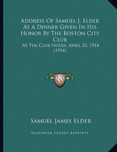 Address Of Samuel J. Elder At A Dinner Given In His Honor By The Boston City Club: At The Club House, April 23, 1914 (1914) full version