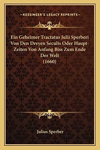 Ein Geheimer Tractatus Julii Sperberi Von Den Dreyen Seculis Oder Haupt-Zeiten Von Anfang Biss Zum Ende Der Welt (1660) (German Edition) full version
