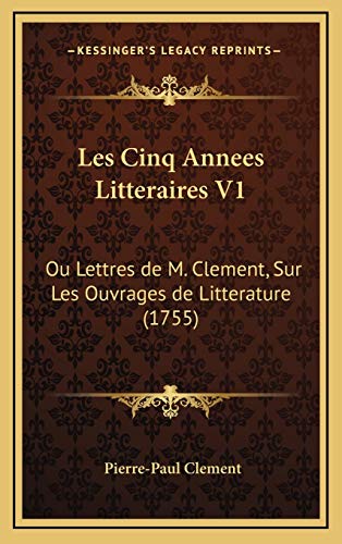 Les Cinq Annees Litteraires V1: Ou Lettres de M. Clement, Sur Les Ouvrages de Litterature (1755) (French Edition) full version