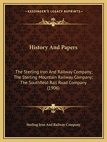 History And Papers: The Sterling Iron And Railway Company; The Sterling Mountain Railway Company; The Southfield Rail Road Company (1906) full version