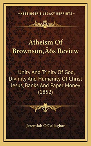 Atheism Of Brownson’s Review: Unity And Trinity Of God, Divinity And Humanity Of Christ Jesus, Banks And Paper Money (1852) full version
