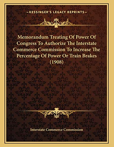 Memorandum Treating Of Power Of Congress To Authorize The Interstate Commerce Commission To Increase The Percentage Of Power Or Train Brakes (1908) full version