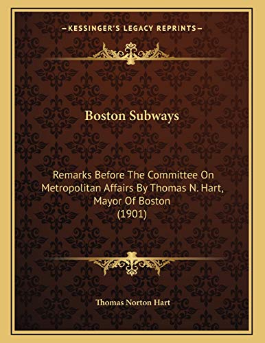 Boston Subways: Remarks Before The Committee On Metropolitan Affairs By Thomas N. Hart, Mayor Of Boston (1901) full version
