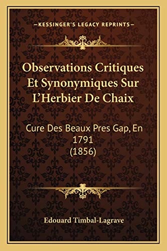 Observations Critiques Et Synonymiques Sur L'Herbier De Chaix: Cure Des Beaux Pres Gap, En 1791 (1856) (French Edition) full version