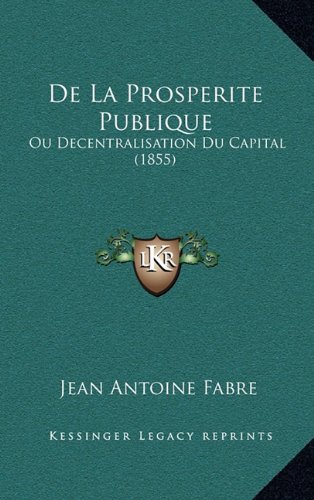 De La Prosperite Publique: Ou Decentralisation Du Capital (1855) (French Edition) full version