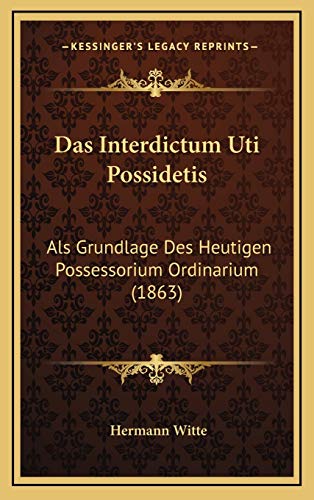 Das Interdictum Uti Possidetis: Als Grundlage Des Heutigen Possessorium Ordinarium (1863) (German Edition) full version