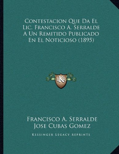 Contestacion Que Da El Lic. Francisco A. Serralde A Un Remitido Publicado En El Noticioso (1895) (Spanish Edition) full version