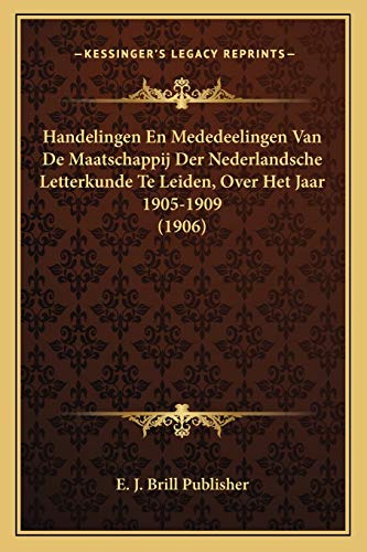 Handelingen En Mededeelingen Van De Maatschappij Der Nederlandsche Letterkunde Te Leiden, Over Het Jaar 1905-1909 (1906) (Dutch Edition) full version
